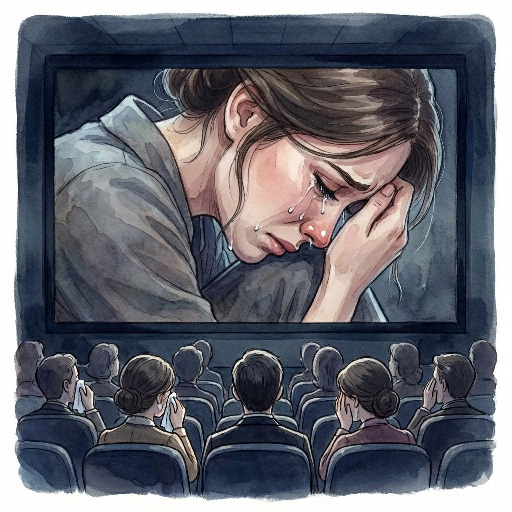 映画のスクリーンいっぱいに、泣いている主人公の顔が映し出されているシーンを想像します。涙が頬を伝い、苦悩に顔が歪んでいる。観客である私たちは、その表情のディテール、息遣いまで感じ取ることができます。