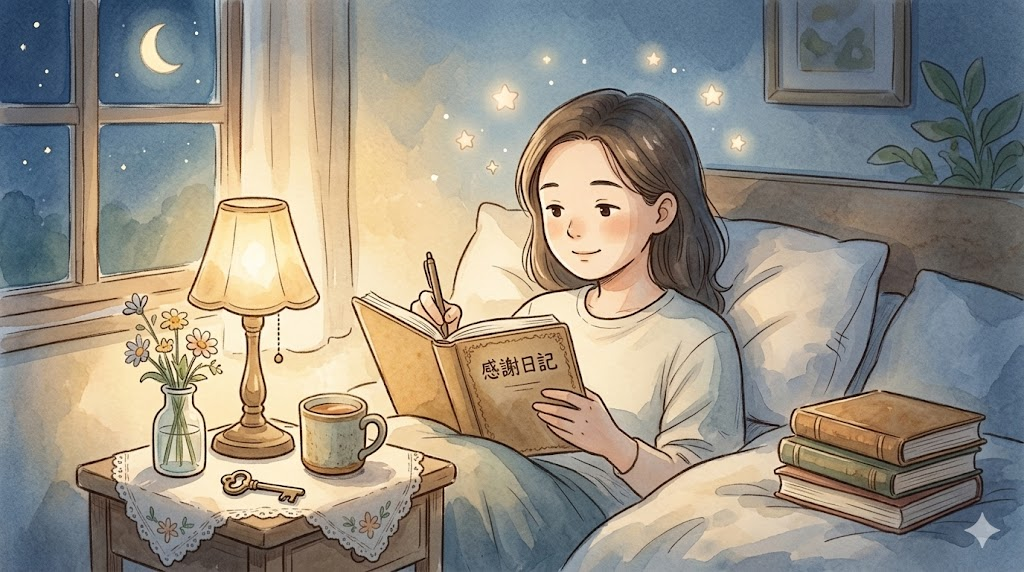 しかし、就寝前のわずか数分を使って「感謝日記」を書くことで、心と脳の状態をポジティブな方向へと整えることができます。